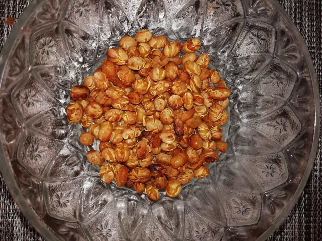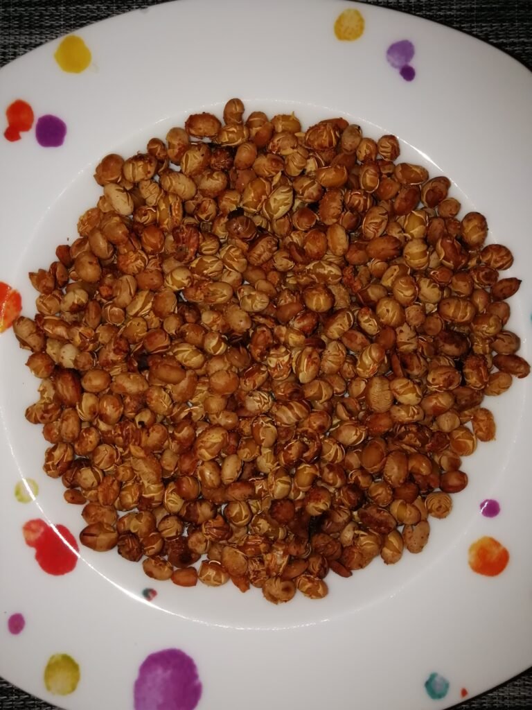 Mod de preparare: De seara, am pus boabele de soia in apa. A doua zi, am fiert boabele de soia aproximativ 1 ora in cca.1 l de apa; cand au inceput sa iasa foitele de pielita la suprafata apei (ca la fasolea boabe) am scurs boabele de apa si le-am condimentat cu puțina sare, usturoi praf și boia dulce. Le-am pus la copt, 20 minute la 200 grade intr-o tava tapetata cu foaie de copt, in strat subtire (intinse cat mai bine si rarefiat ).