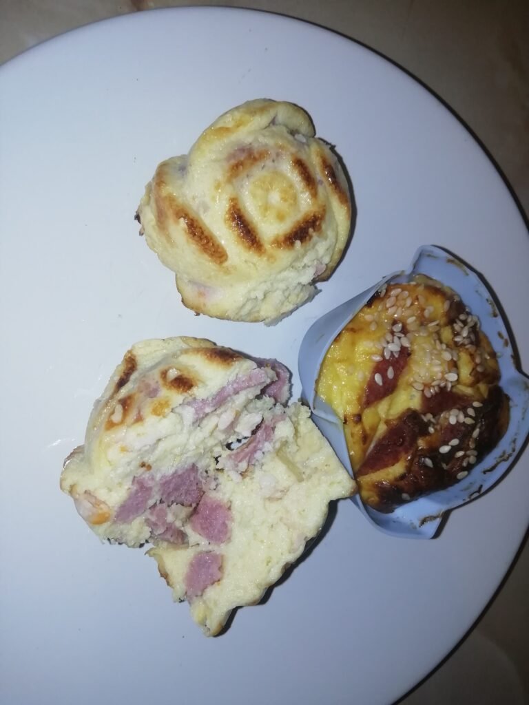 Mod de preparare: Am fiert conopida timp de maxim 5 minunte in apa cu sare și o foaie dafin, apoi am blenduit-o împreună cu usturoiul și oul de găină. Am adăugat parmezanul ras, un praf de sare și salamul tocat cubulețe. Am pus compoziția cu lingura în forme de brioșe, le-am decorat cu susan alb și le-am copt aproximativ 20 minute la 200 grade pana s-au rumenit ușor.
