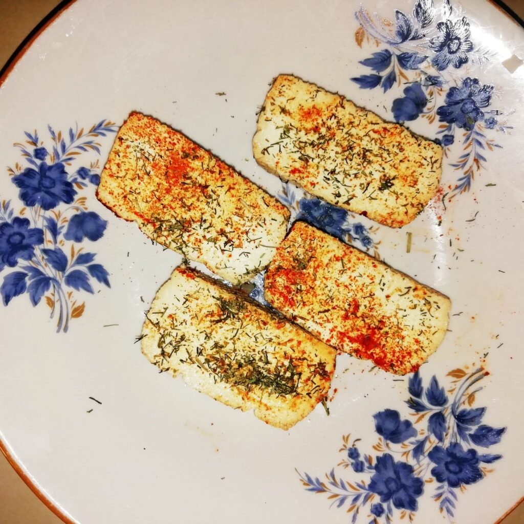 Mod de preparare: Am condimenat tofu cu boia și mărar și l-am pus la gătit pe grill, câte 2, 3 minute pe fiecare parte, timp în care am tocat ceapa cubulețe și am gătit-o cca 2-3 minute în ulei amestecând de câteva ori. Am adăugat nautul scurs bine de apă, ajvarul și am condimentat cu sare și oregano. Am lăsat mâncarea la gătit cca 5 minute, fără capac, amestecând de câteva ori. Poftă bună la un prânz gustos, rapid și sănătos!