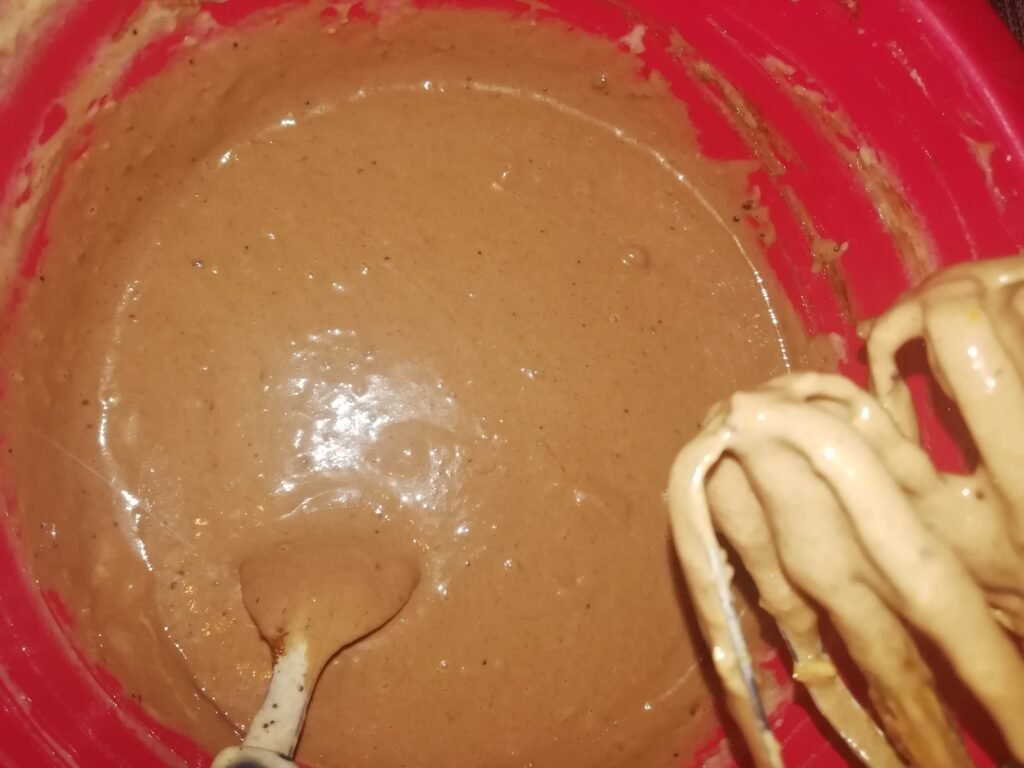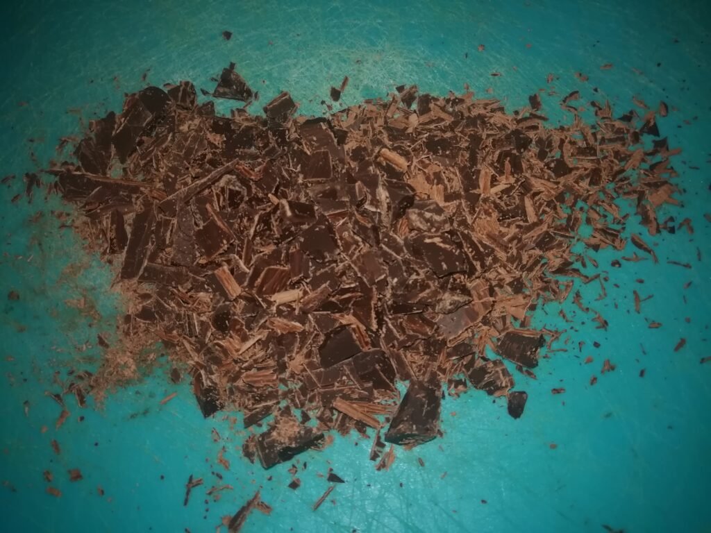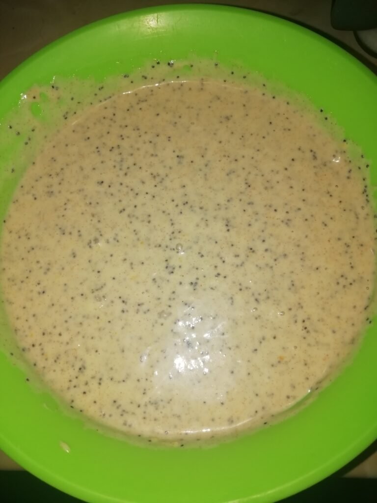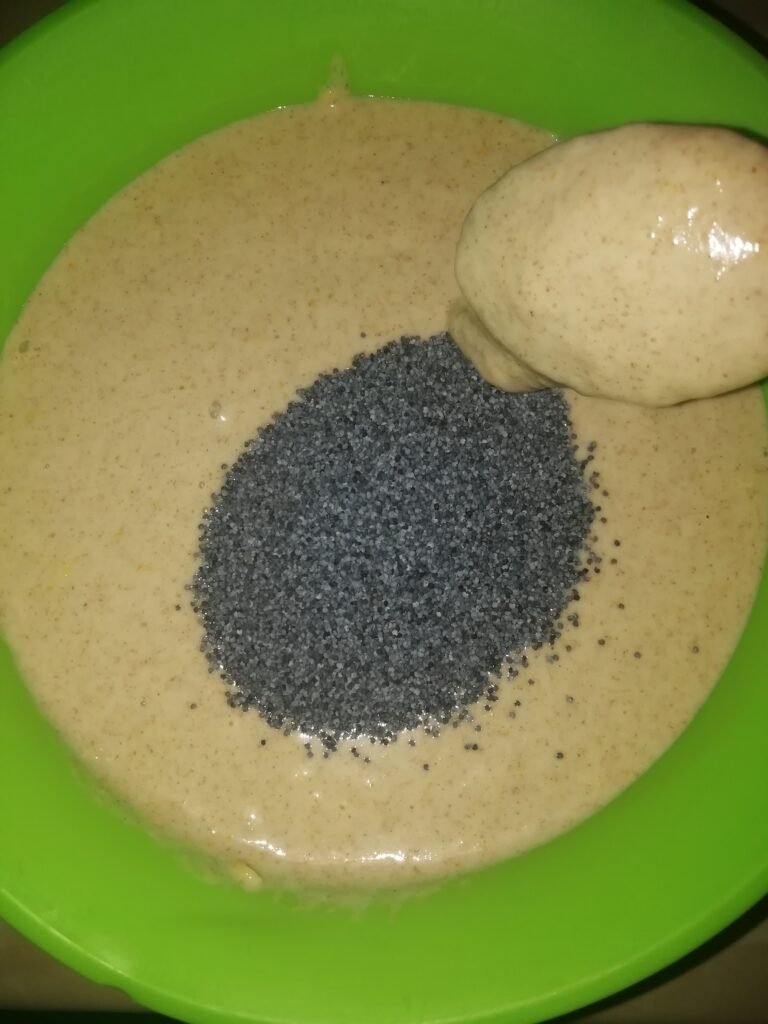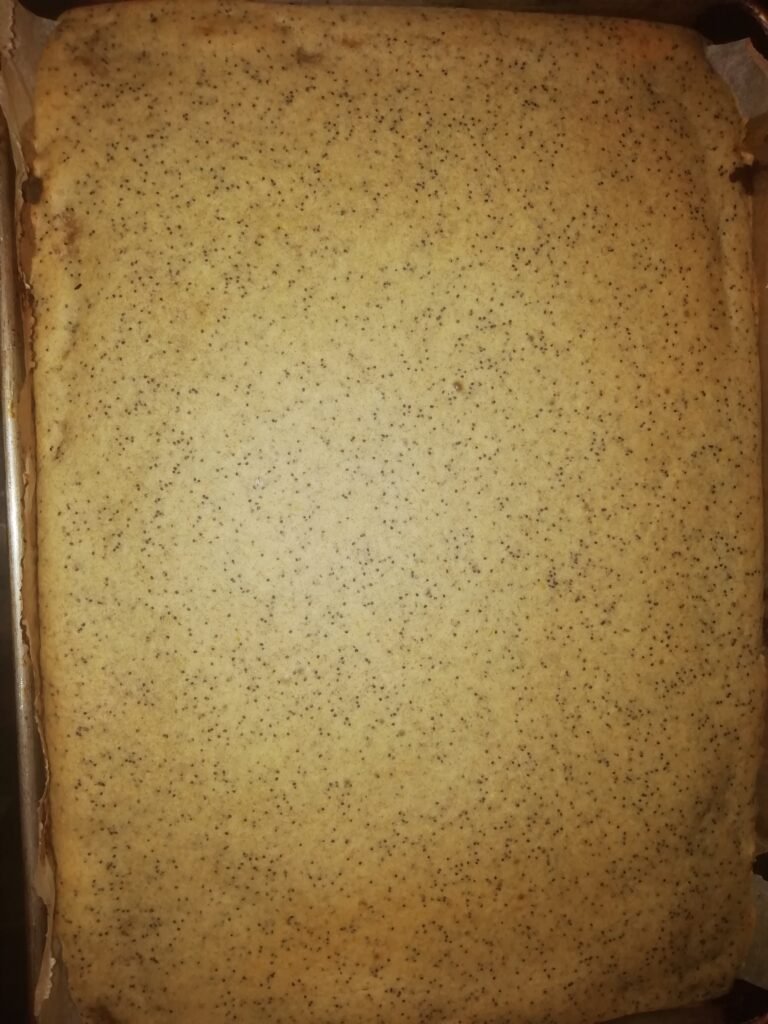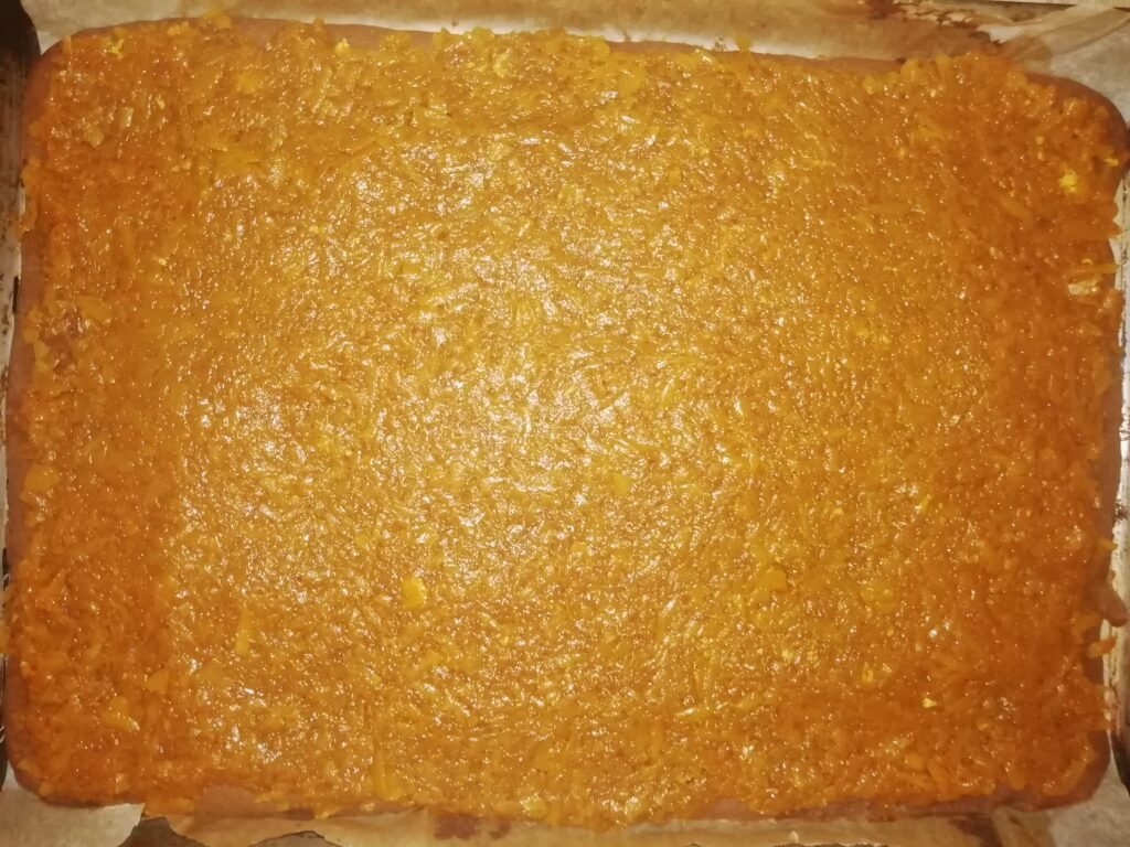 Cum am pregătit compoziția pentru blat: Am amestecat făina cu praful de copt nestins, am presărat un praf de sare și apoi am adăugat: apa minerală, uleiul, îndulcitorul, esența, coaja de portocale răzuită fin. Am mixat compoziția câteva secunde, apoi am împărțit-o ochiometric în două: în jumătate din compoziție am adăugat macul iar în cealaltă jumătate am încorporat pudra de roșcove. Am răsturnat și distribuit uniform, compoziția maro (cea cu care conține pudra de roșcove) într-o tavă tapetata cu hârtie de copt și am lăsat- o la copt cca. 20-25 minute la 200 grade, în cuptorul preîncălzit cca. 1 minut înainte; am scos tava din cuptor, am răsturnat dovleacul, l-am distribuit cât mai uniform pe toată suprafața blatului din tavă, am răsturnat și distribuit uniform, compoziția cu mac și am mai lăsat prăjitura la copt, cca 25-30 minute sau până trece testul cu scobitoarea (în funcție de cuptor). Am tocat ciocolata cu cuțitul pe un tocător și am presărat- o peste prăjitura scoasă din cuptor, pe care am lăsat- o să se răcească, apoi am porționa-o după plac.