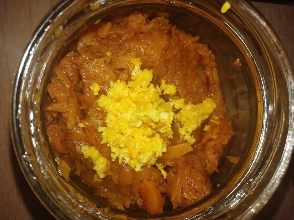 Cum am pregătit dovleacul: dovleacul l-am curățat de coajă și semințe și l-am ras pe răzătoarea cu ochiuri mari, l-am amestecat cu îndulcitorul și apoi l-am lăsat pe aragaz la scăzut cca. 15-20 minute până s-a evaporat parte din apă din el, amestecând de câteva ori ca să nu se prindă de vas; l-am aromatizat cu scorțișoară și coajă rasă de poartocale. Poftă bună și mulțumesc pentru vizită!