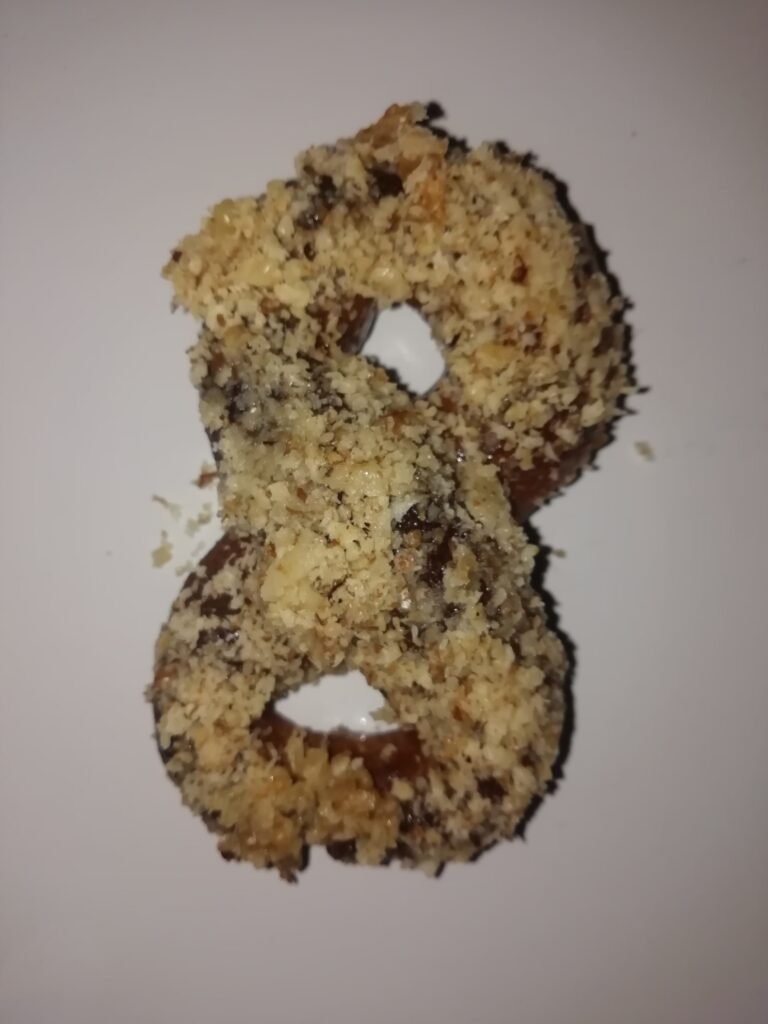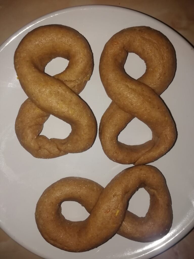Mod de preparare: Am pregătit maiaua amestecand indulcitorul cu drojdia și o lingura de faina integrala și am lăsat-o la hidratat aproximativ 15-20 minute. Apoi, peste plamadeala obtinuta am adăugat restul de faina, un praf de sare, coaja rasa de portocala, esența de vanilie în care am topit restul de indulcitor si apa cat sa rezulte un aluat nelipicios. Am copt sfintisorii la 180 grade pana s-au rumenit plăcut! I-am uns cu sirop de agave si apoi i-am dat prin nuca pisata. Pofta bună!