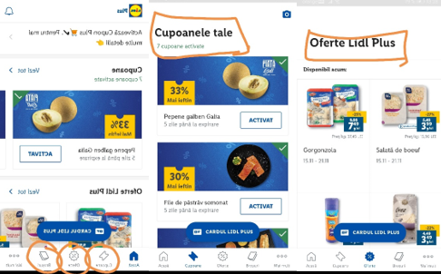 - vizualizez în aplicație secțiunile cu produsele la reducere-„cupoane”, „oferte”, sau răsfoiesc revista în format fizic și îmi fac lista de cumpărături pe o foaie sau în aplicația mobile a hipermaketului (nu toate aplicațiile oferă posibilitatea de a crea o lista de cumpărături)