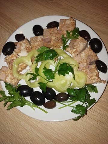 Altă variantă în locul membranei naturale: Se taie o sticlă de 1,5 l (de la apă folosesc eu) se pune o pungă în sticlă și se toarnă umplutură, pregătită așa cum am descris mai sus. A două zi sau chiar după câteva ore (se verifică dacă tobă a gelifiat) se scoate tobă din sticlă foarte ușor trăgând de marginile pungii, pungă ce poate fi păstrată că recipient de depozitare în frigider; dacă nu vrea să iasă, se taie sticlă cu un foarfece. Poftă bună!